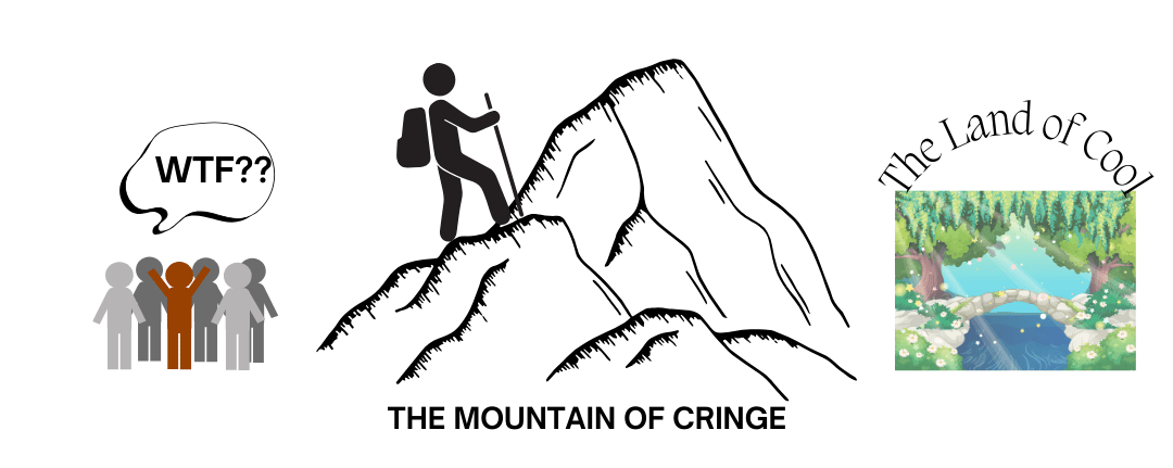 After a dreadful climb over the Mountain of Cringe, you descend into the Land of Cool. But you can’t get there without getting over the mountain first.